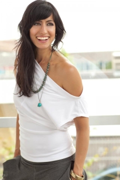 Lightweight, body skimming tee with extra wide neck and deep armholes.